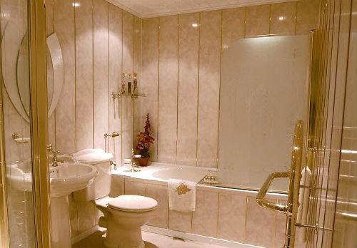 Le revêtement peut être collé aux murs, s'ils sont uniformes, ou peut être monté sur un profilé en plastique, après avoir traité les murs avec un antiseptique.La finition d'une salle de bain avec revêtement ne prend pas beaucoup de temps et est magnifique.