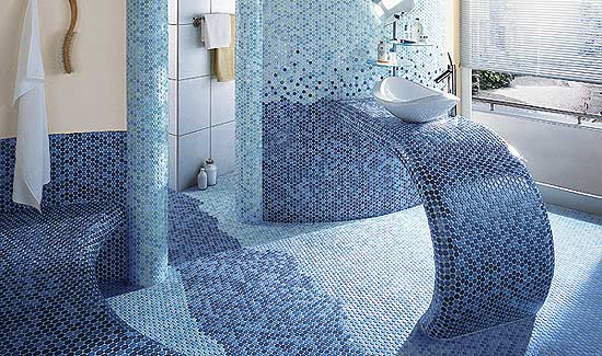- La mosaïque de pierre ou de verre est un matériau qui vous permet de créer des salles de bain complètement insolites. Le style professionnel des mosaïques est possible pour les vrais maîtres de leur métier.