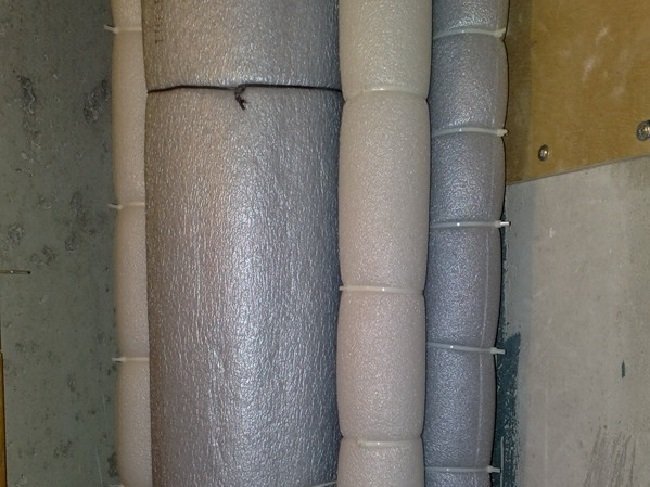 Pour atténuer le bruit structurel, une coque en mousse est placée sur le tuyau ou la mousse de polyuréthane est enroulée. L'isolement est utilisé sur la colonne montante et sur les sites de câblage. L'effet d'amortissement du bruit est donné par l'enroulement du tuyau avec la membrane de protection Texaund. Cela élimine les sons audibles - gargouillis dans les tuyaux, gargouillis, bourdonnement.